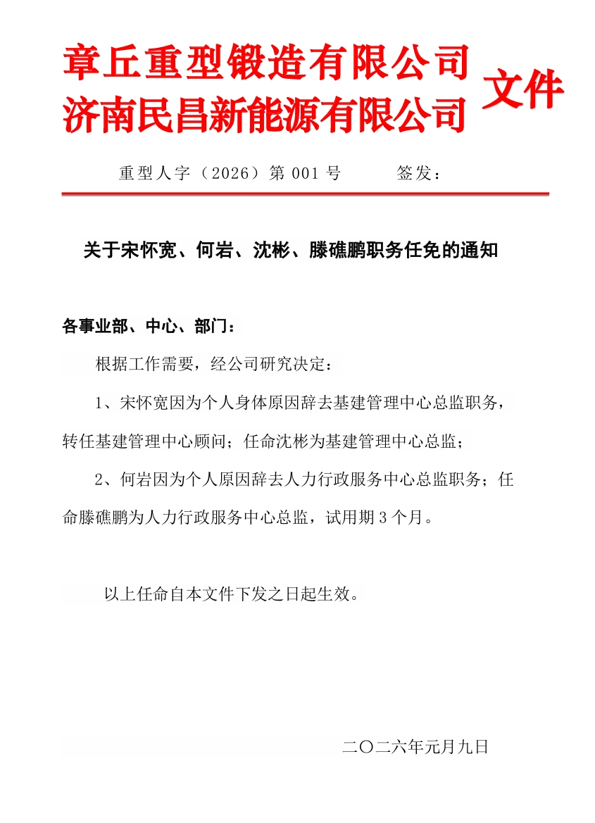 关于宋怀宽、何岩、沈彬、滕礁鹏职务任免的通知